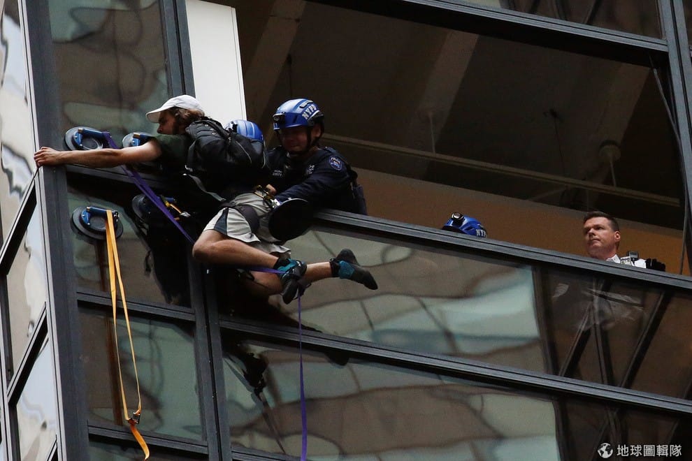 川普大樓外,紐約員警正試著把爬上高樓的男子抓回來。報導指出,曼哈頓第五大道的川普大樓,是共和黨總統候選人川普(Donald Trump)的競選總部,男子是從 5樓對外開放的中庭,借助吸盤的方式開始往上攀爬,而警方則在卸下 21樓的窗戶後,將他拉進大樓內。目前尚未知曉他爬上川普大樓的原因,但1名警方消息人士說,從這名男子身上帶的傳單來看,他是為了自我推銷。