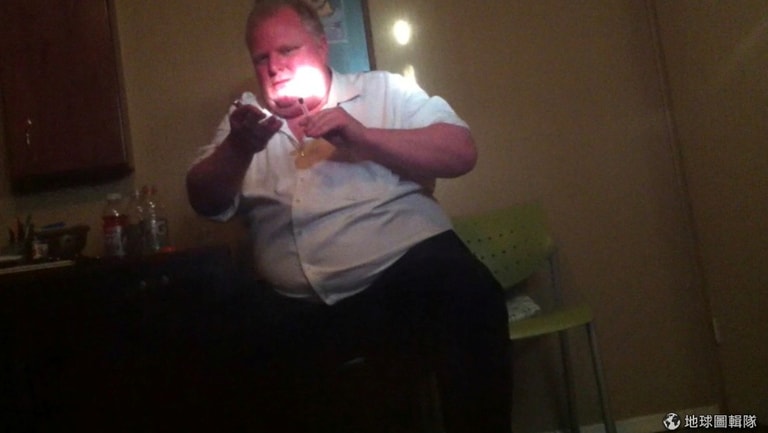 已故多倫多市長福特(Rob Ford)抽著快克古柯鹼,這是來自一部影片的截圖,近日安大略州當地最高法院取消了發布此影像的禁令。