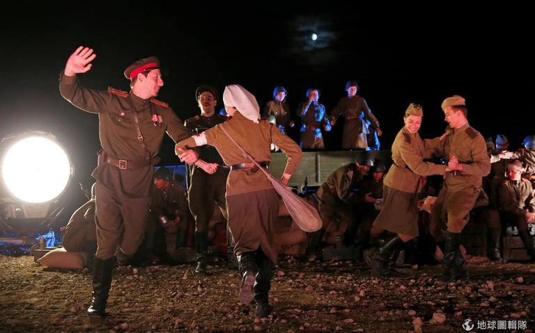 在 2016世界軍人運動會的閉幕式上,演員打扮成二戰軍人,在眾目睽睽下表演。