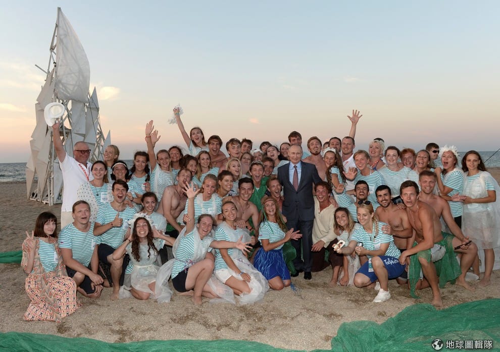 19號這天,俄國總統普亭( Vladimir Putin)來到在 2014年脫烏入俄的克里米亞,和參加青年論壇的民眾一起合影。
