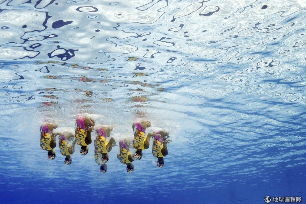奧運水上芭蕾比賽正如火如荼進行中,現在上場的是來自日本的隊伍。