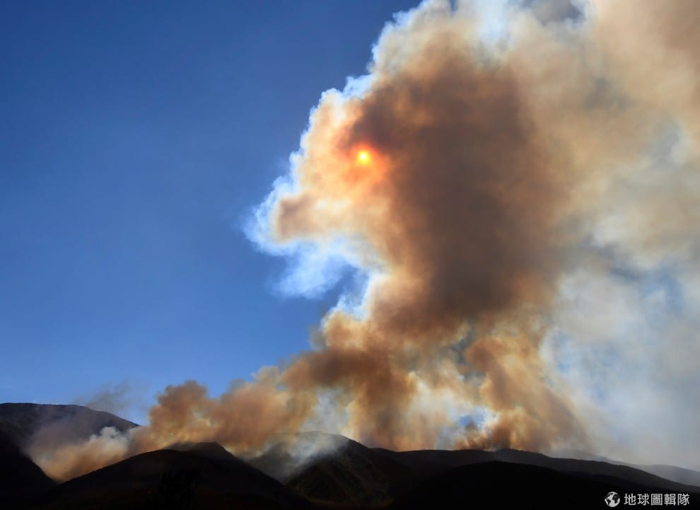 加州聖貝納迪諾(San Bernardino)正為森林大火所苦,熊熊火勢帶來的濃煙直竄天際。