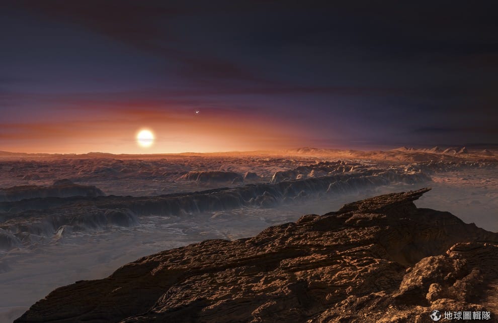 24號這天,歐洲南天文台釋出一張藝術家的模擬畫,圖中畫的是距離地球 4.2光年外的新行星Proxima b表面的景色,這顆行星環境和地球相似,其上可能有液態水存在,適合生物生活,科學家對它寄予厚望,未來人類說不定可以移居到該行星。