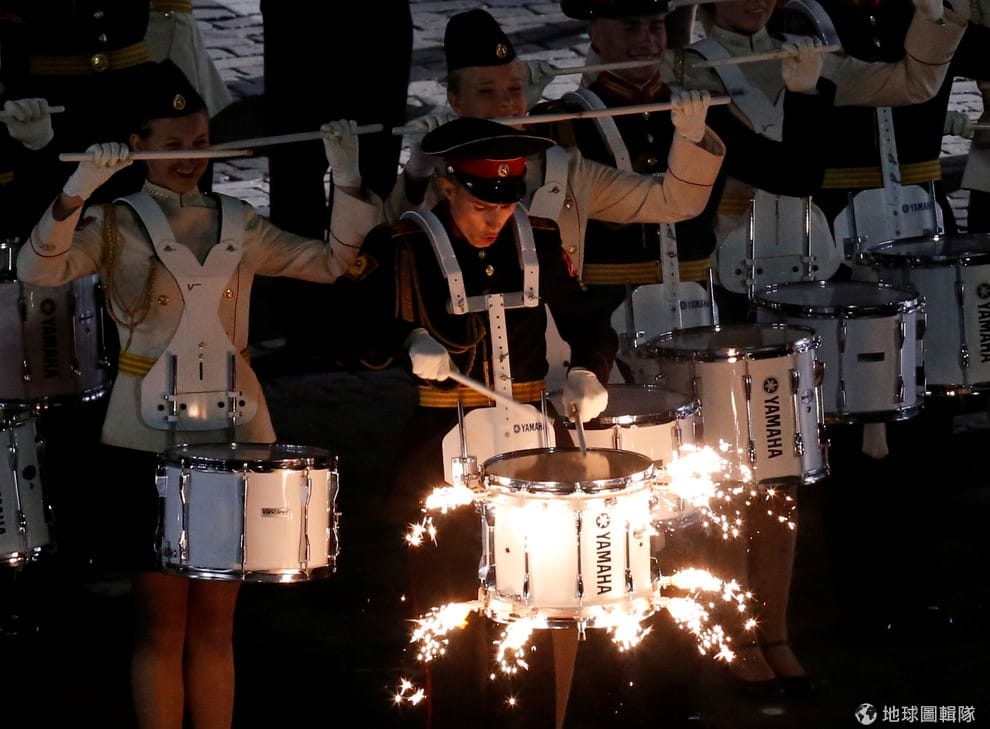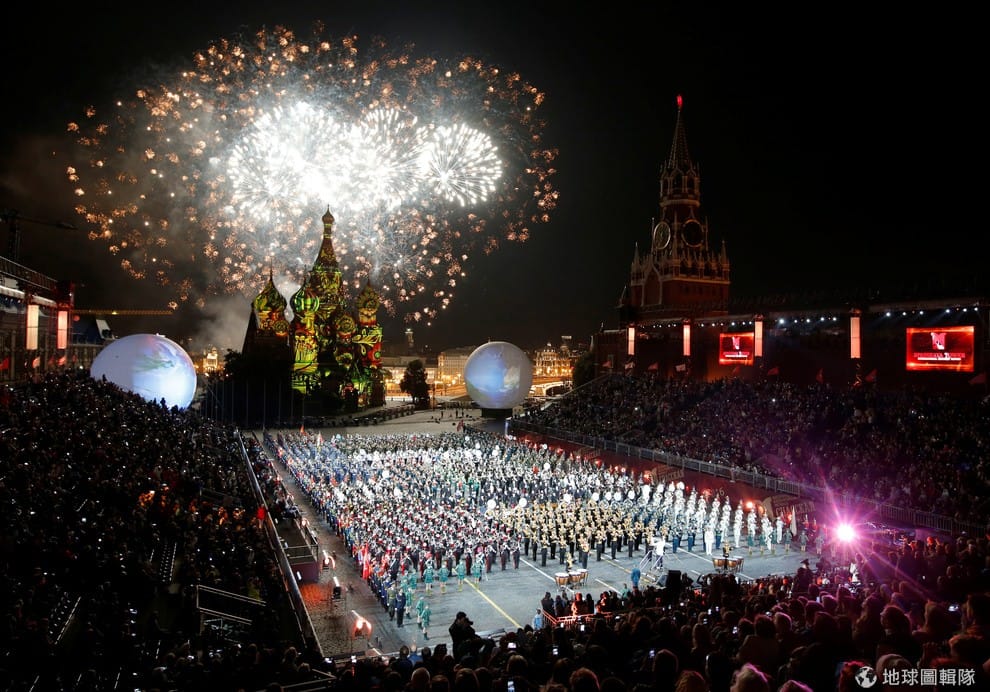 每天晚上在表演結束前,也會有 1,500個樂手一起在紅場上演奏,並配上炫目的煙火為一整天的表演畫下歡騰又完美的句點。就讓我們來看看各國軍樂隊的精彩照片吧!