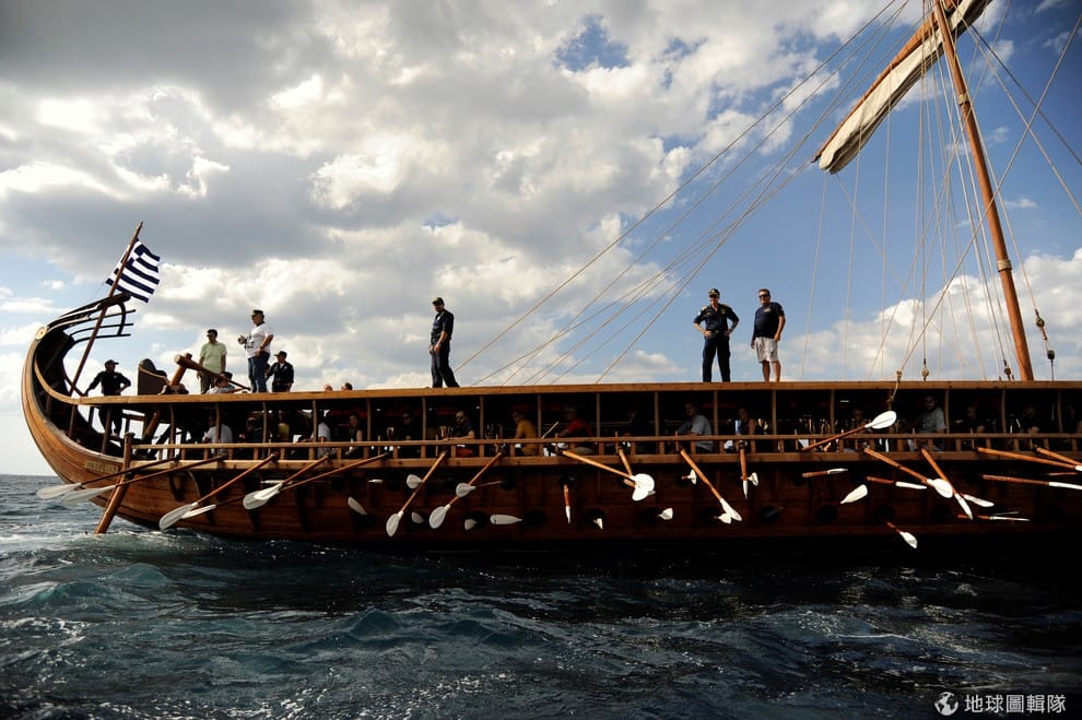 在希臘海軍的帶領下,市民終於有機會划划這艘名叫「奧林匹亞」(Olympias)的古希臘雅典戰船。
