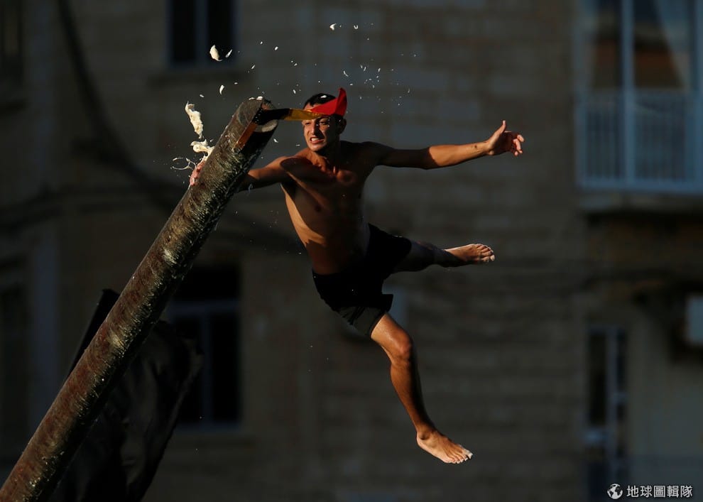 在馬爾他首都法勒他(Valetta)的慶典「加斯塔」(gostra)上,一名男子正在努力爬上滑溜溜的杆子,試圖率先搶到旗子。這個慶典起源於中世紀,是為了慶祝聖朱利安(St Julian)所設立的活動,在這個活動上,所有年輕男子、女人、小孩都會前來試圖爬上這根塗滿油的杆子。