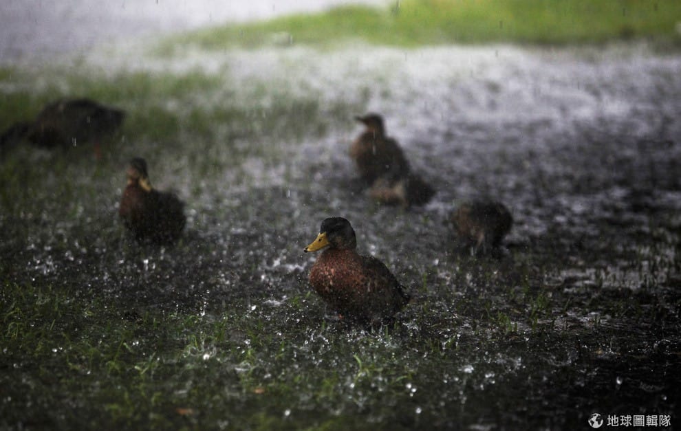 熱帶風暴赫敏(Tropical Storm Hermine)從南卡羅來納州經過,強烈襲擊美國。照片中的鴨子也無法倖免於猛烈的暴雨攻勢。