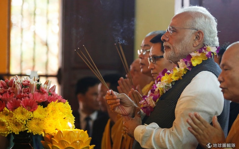 印度總理莫迪(Narendra Modi)到越南河內市訪問,並到館使寺(Quan Su Buddhism pagoda)祭拜。莫迪稍後也與越南領導人陳大光(Tran Dai Quang)在總統府發表談話。