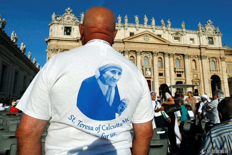 周日(4),梵諦岡聖彼得廣場湧入成千上萬名信徒,他們齊聚聖彼得大教堂前見證德蕾莎修女(Mother Teresa)的封聖禮。