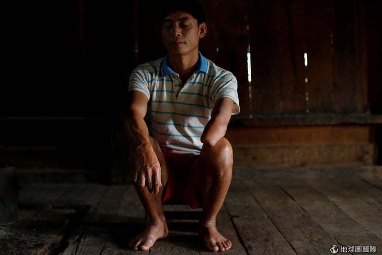 在燒垃圾時誤引爆炸彈的葉陽(Yei Yang)失去了眼皮、上嘴唇與耳朵,他說當時毫無意識地躺在醫院整整兩周,只感受到極度的痛楚:「我到現在還是會覺得痛......我沒辦法種田,沒辦法去見朋友,因為他們可能會怕我。......我也不想活著。」