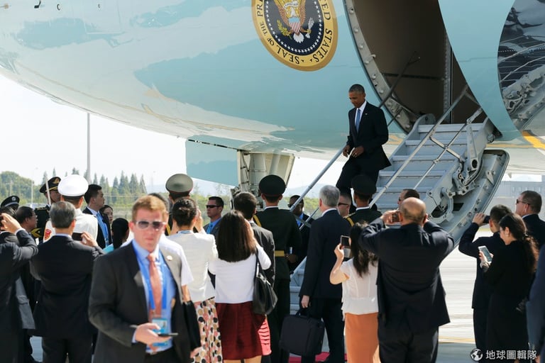 美國總統歐巴馬一踏上杭州便成為全球焦點,因為他和其他領導人受到的歡迎方式不同。其他領導人踏著鋪有紅毯的階梯下機,歐巴馬則從機腹的手扶梯下來,這一點被媒體大作文章,紛紛推測這是中國給美國使拐子。然而,美國表示這是因為安保的緣故,他們拒絕使用中國提供的階梯。