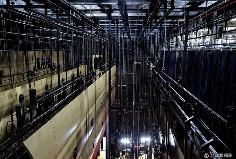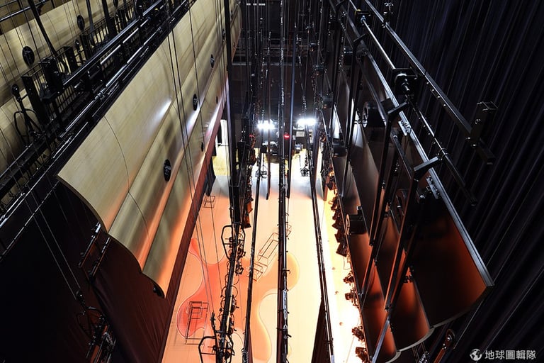 其實呢,要進到這狹窄的貓道還要點工夫,因為這邊在表演前的準備期間,不只是調整燈光和屏幕的工作人員會在這邊穿梭,保養人員、機電人員也會在這邊來回走動。想像一下,在沒有冷氣的情況下,充滿工作人員的狹窄貓道就會變得非常悶熱,但對喜愛劇場表演的他們來說,可不以為苦,能在熱愛的劇場中工作、讓觀眾體驗到最棒的表演是他們的堅持和驕傲,落幕時那如雷的掌聲對他們來說就是最大的滿足!圖片來源:袁慶華攝
