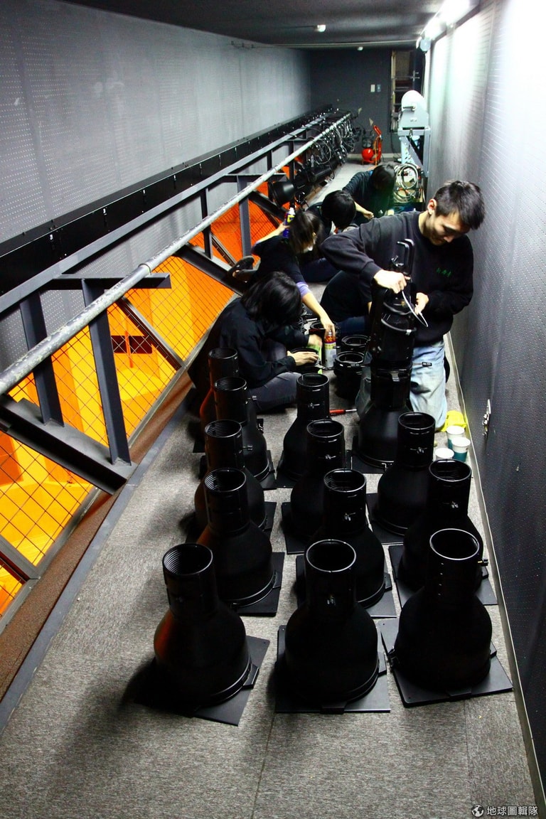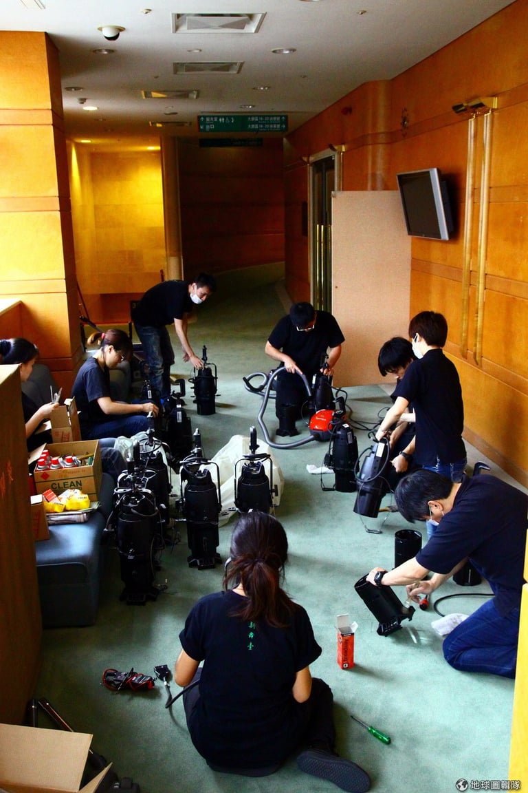 照片中是新舞臺助理,他們正在進行定期燈具保養。圖片來源:新舞臺提供