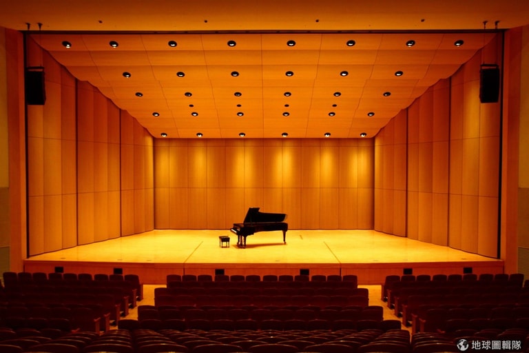 一片片的板子,學問可大了!它們名字叫做「音響反射板」,其中的小秘密就在於它們具備可折收關節、節省舞台旁收藏空間的功能。圖片來源:袁慶華攝