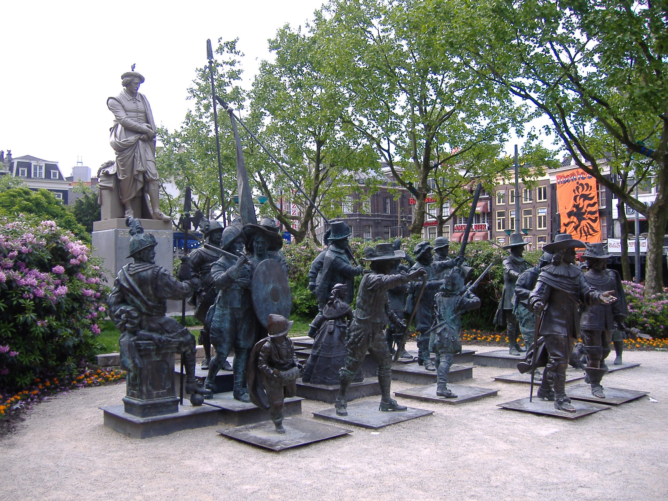 荷蘭為了慶祝國寶畫家林布蘭 400歲生日,請來當代藝術家將《夜巡》這幅畫實體化,打造出一尊尊與真人等身大小的雕塑,擺在阿姆斯特丹林布蘭廣場上。
