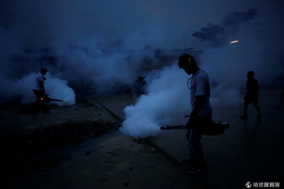 由於蚊子有傳染瘧疾、登革熱、茲卡病毒的風險,海地《人口與健康衛生部門》的工作人員正在使用熏蒸的方式,在容易滋生蚊蟲的地方噴灑藥劑。