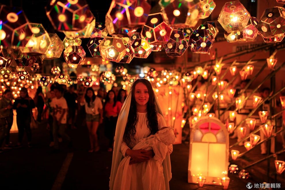 一名女孩在燈籠節(the Lantern Festival)打扮成聖母瑪利亞的模樣,慶祝聖母瑪利亞生下耶穌前夕。