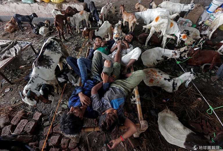 在宰牲節(Eid al-Adha)前夕,商人在準備販賣的羊群中睡覺。