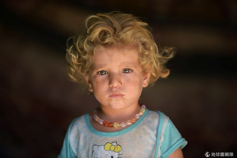 一名到伊拉克拜伊吉市(Baiji)難民營的敘利亞男孩被拍攝下來。