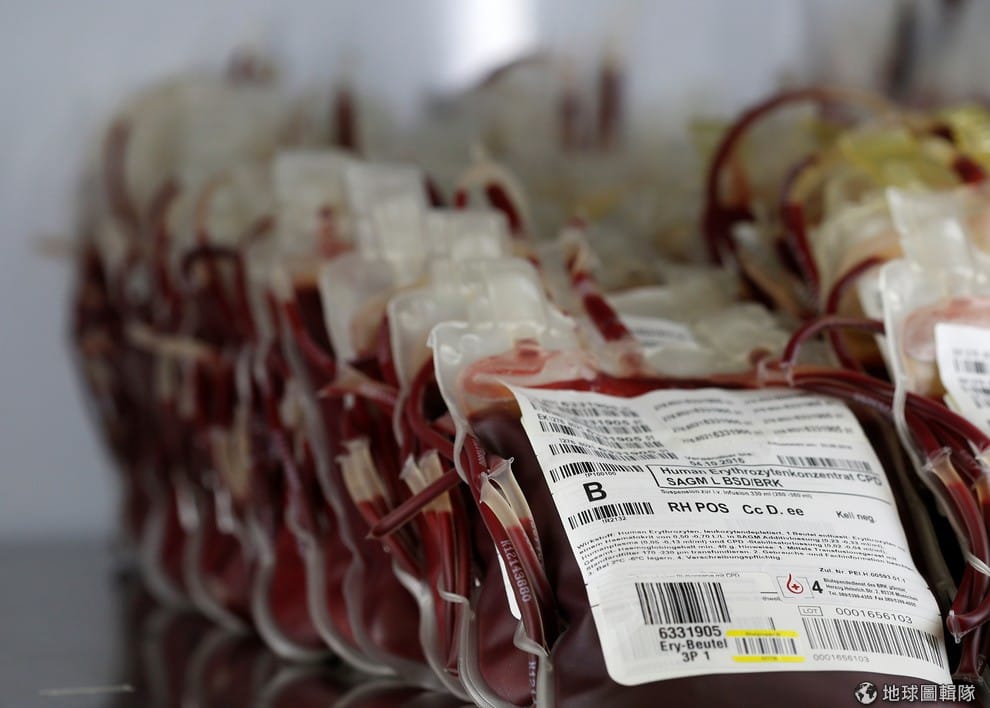 在巴伐利亞紅十字會(Bayerisches Rotes Kreuz, BRK)的捐血中心,一袋袋的血袋整齊地擺放在冰箱裡面。