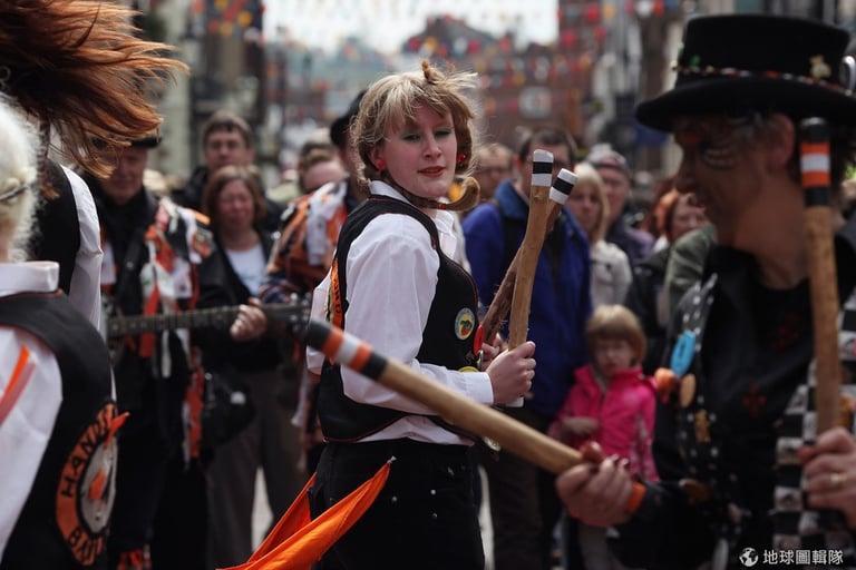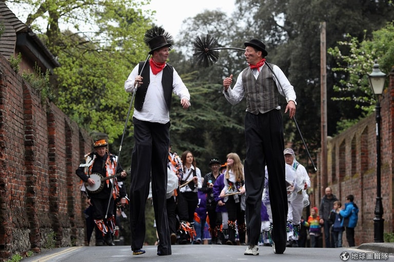 為期3天的「掃煙囪節」活動中,居民們會跳起五月花舞,邊隨著樂隊遊行前進,他們一方面慶祝春天的來臨,用各種顏色把自己好好妝點一番,象徵春天的多采多姿,另方面也保留英國17、18世紀工業時期留下的「傳統」──掃煙囪──的精髓,人人手拿長刷,或是把臉塗黑地慶祝煙囪節。