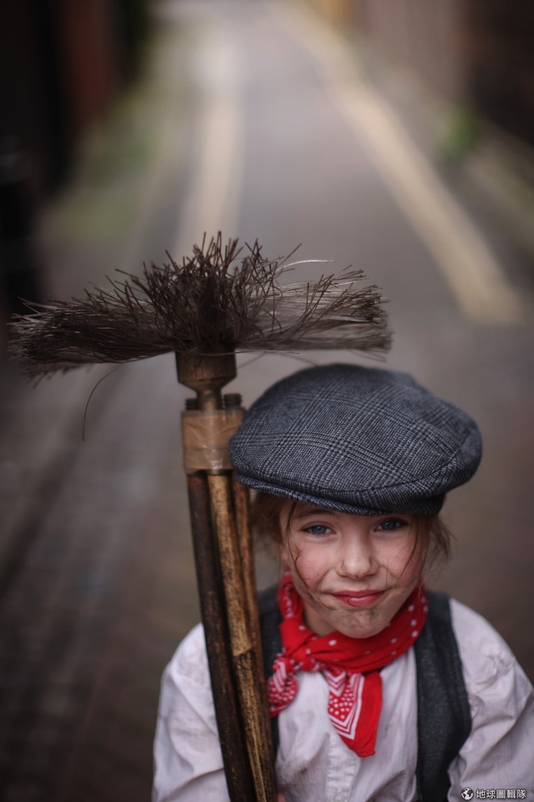 此外,煤炭取代原本的柴燒後,煙囪管出現的油漬會層層堆疊成阻礙排氣的煤渣,這時「掃煙囪工人」的行業因應而生。