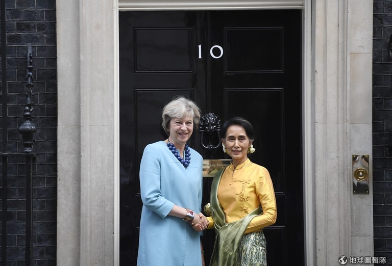 13號這天,英國新任首相梅伊( Theresa May)在首相官邸唐寧街十號和緬甸外交部長與國家顧問翁山蘇姬(Aung San Suu Kyi)見面。