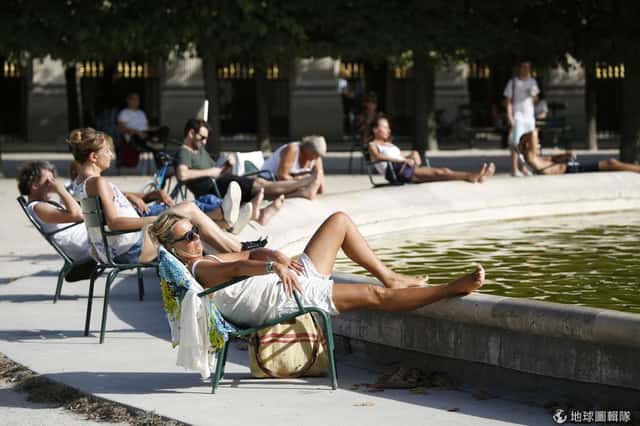 人們在巴黎皇家宮殿的噴水池旁納涼,再走幾步路就可以到羅浮宮欣賞各國大師的歷史名畫。