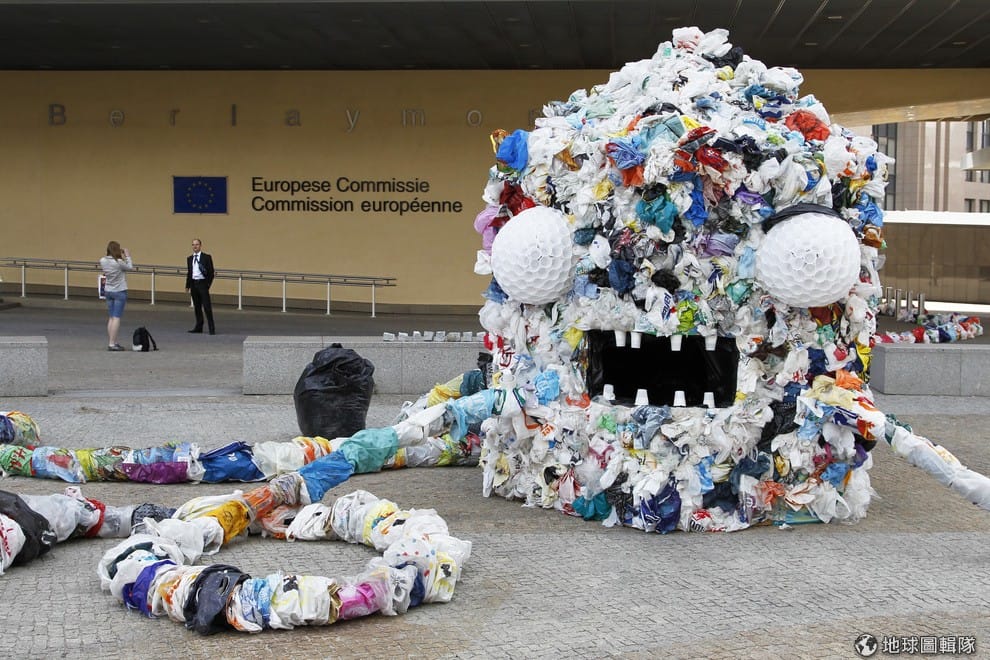 2011年斯洛維尼亞的藝術家用 4萬個塑膠袋與 7,500個塑膠杯子,在歐洲執委會總部前立起一座名為「塑膠袋怪獸」的作品。
