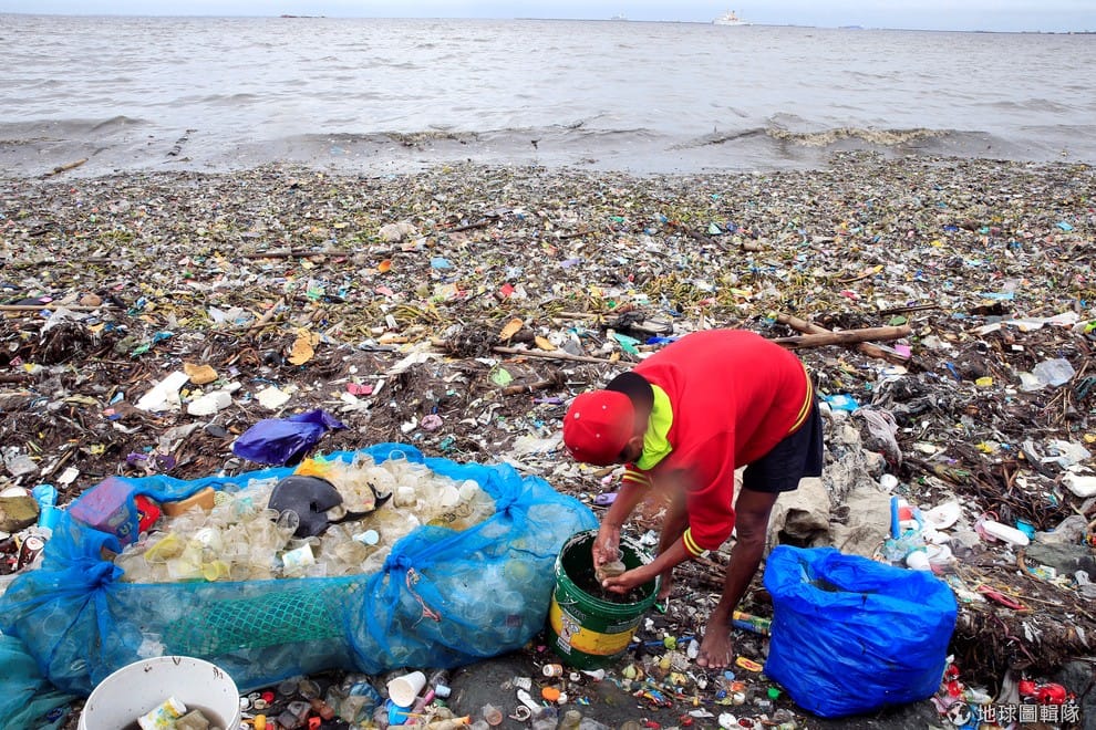 在大雨之後,大量的垃圾被沖到岸邊,拾荒者也趁這個時候到岸邊蒐集乾淨的塑膠杯子。