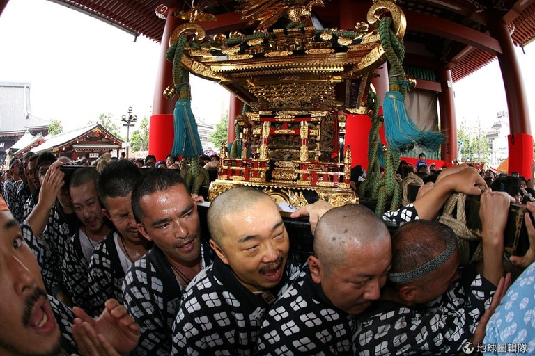 星期六的時候,100多座淺草地區的神轎在神社集合後,在路上遊行。這些神轎體型較小,幾十人就可以扛起。Keith Tsuji/Getty Images