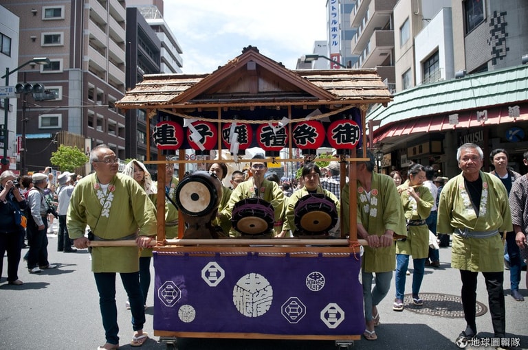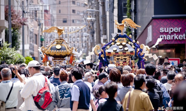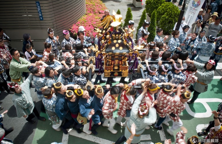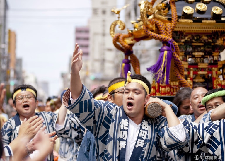 星期五熱鬧的活動就開始啦!東京淺草地區會有大規模的遊行表演,一輛輛的花車載著表演者從柳街遊行到神社,有人吹笛,有人打鼓,歌者、舞者開心的唱歌跳舞,為三社祭揭開序幕。Keith Tsuji/Getty Images