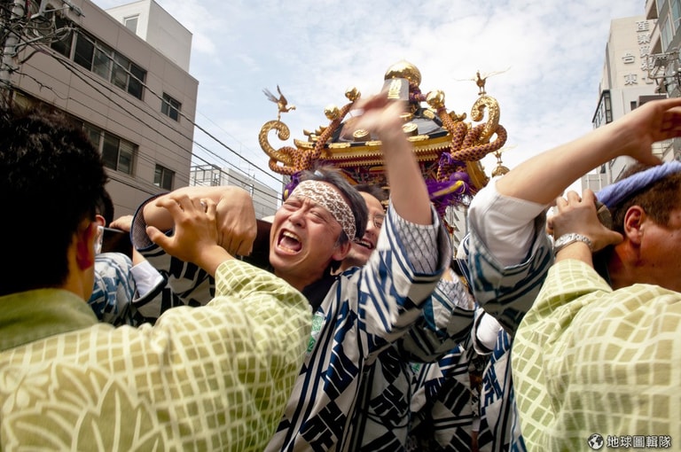 就算不抬轎子,日本人也會在旁邊幫忙拍手、吹哨子指揮抬轎。Koichi Kamoshida/Getty Images