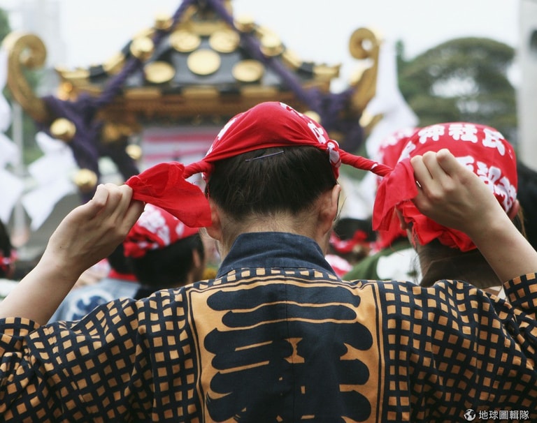 女孩綁緊頭巾,準備投入熱鬧的三社祭!Koichi Kamoshida/Getty Images