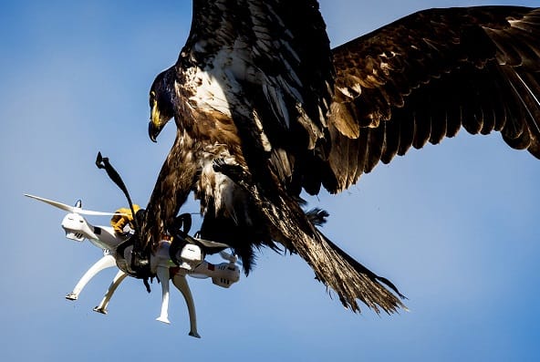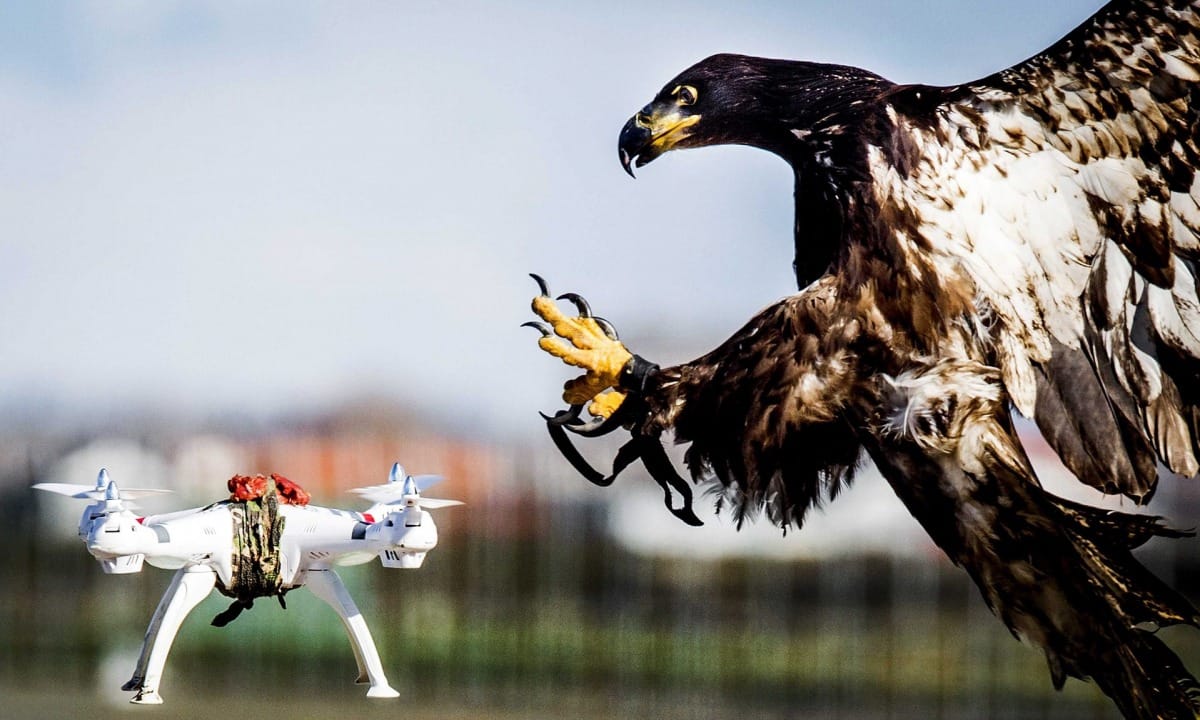 在荷蘭警方發佈的視頻中,一隻老鷹從空中高速地俯衝,用牠的利爪,掐住一架幻象(Plantom)DJI無人機。這架無人機被老鷹 攫走時,訓練員就立刻關掉電源。