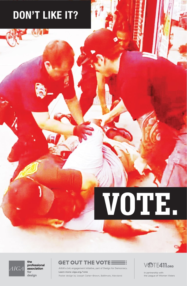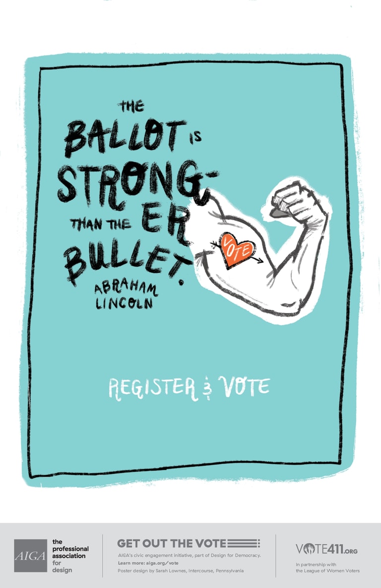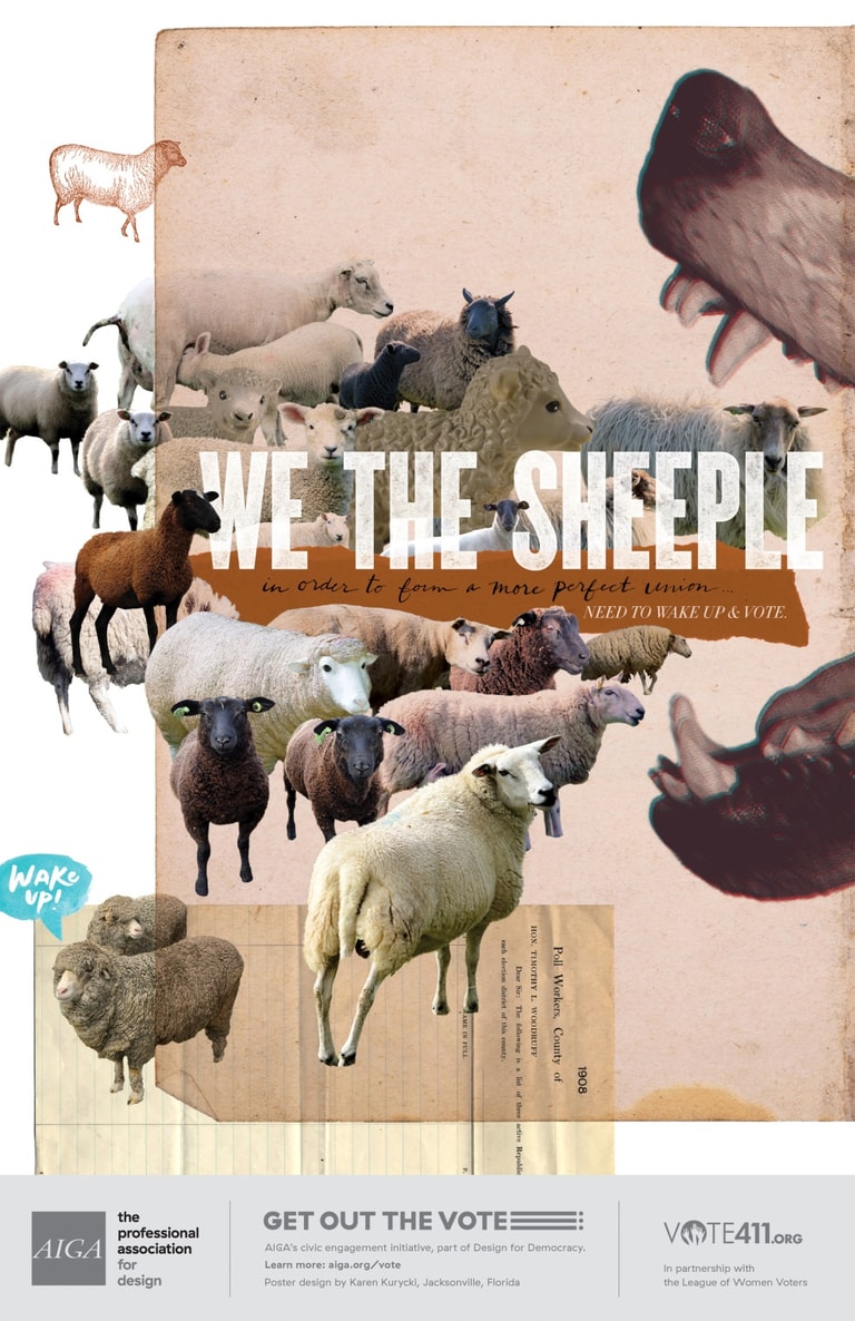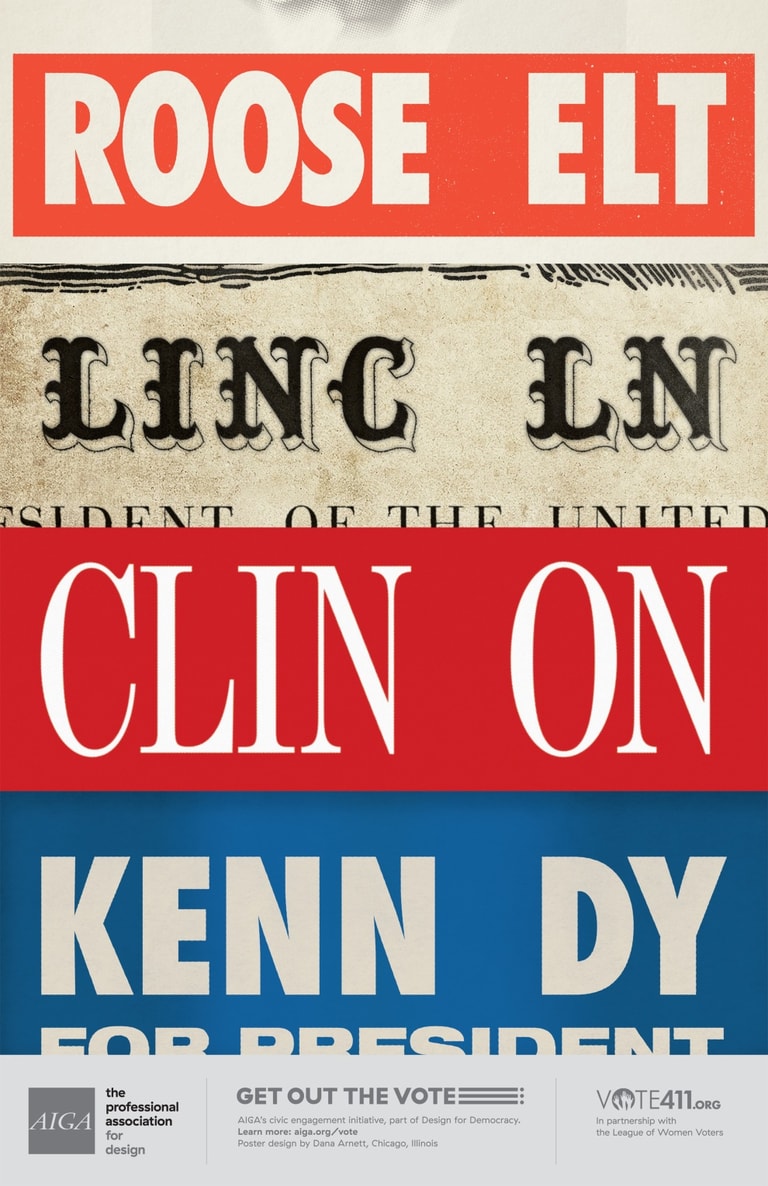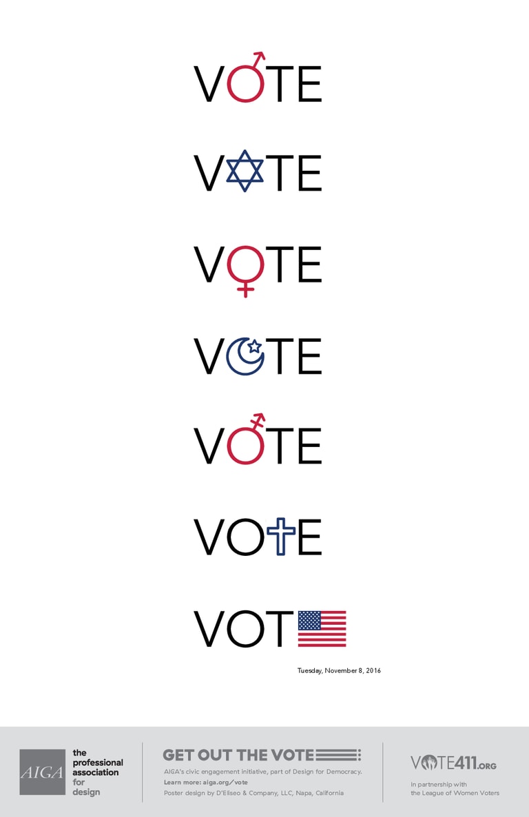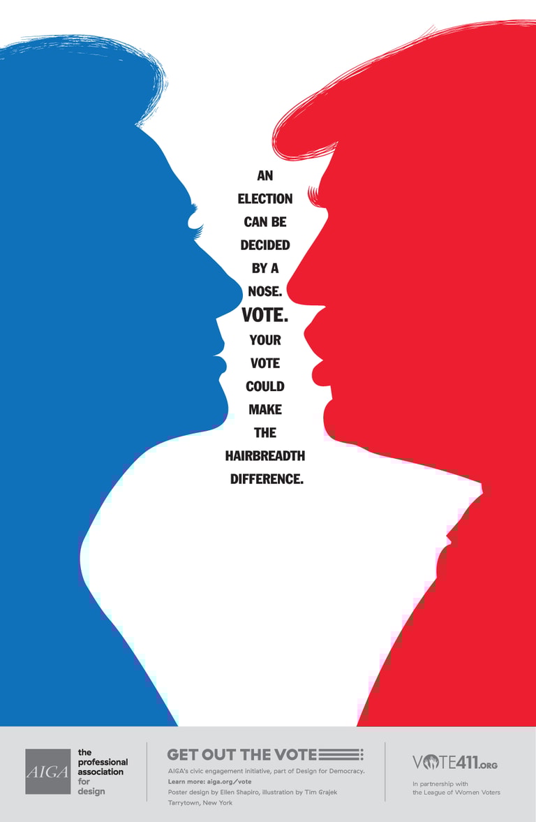 為了呼籲大家踴躍投票,美國平面設計協會(American Institute of Graphic Arts, AIGA)從 2004年開始,便廣邀旗下設計師設計催票海報,希望可以「發揮設計的力量,刺激美國大眾登記投票」。