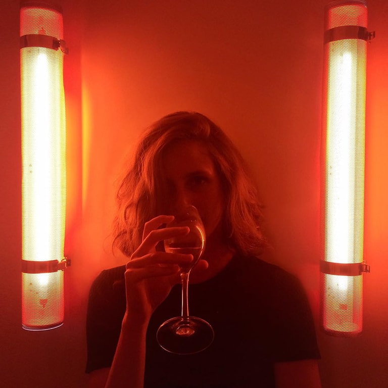 原來在大部分的照片中,這位扮演德拉吉的模特兒永遠酒不離身。