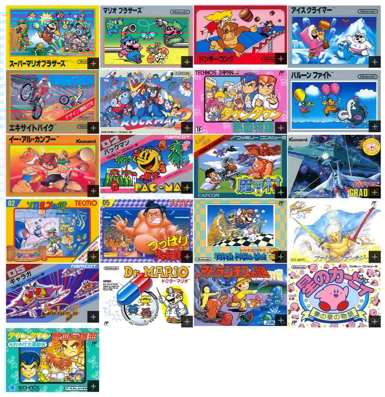 在遊戲的內藏方面,和美規的 NES Classic 一樣是內建 30 款任天堂公司自家與 Konami 、TECMO 公司的日版遊戲,包含從最早 1983 年發售的《大金剛》至 1993 年的《卡比之星》,兩大 RPG 系列則選了《Final Fantasy III》,值得訝異的是還追加了當時需要擴充磁碟機才可以遊玩的《薩爾達傳說》與《薩爾達傳說 2:林克大冒險》與《銀河戰士》,當然紅白機名作如雲,不管選擇三十款乃至於五十款都一定會有遺珠之憾,這部分實難滿足所有人的喜好。
