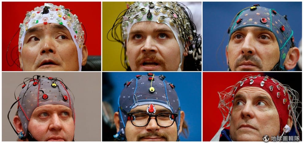 來自世界各地的選手齊聚一堂,戴上偵測腦部活動的連線頭套,準備來一場腦力大比拼,用所思所想遠端控制電腦,模樣科幻有趣。