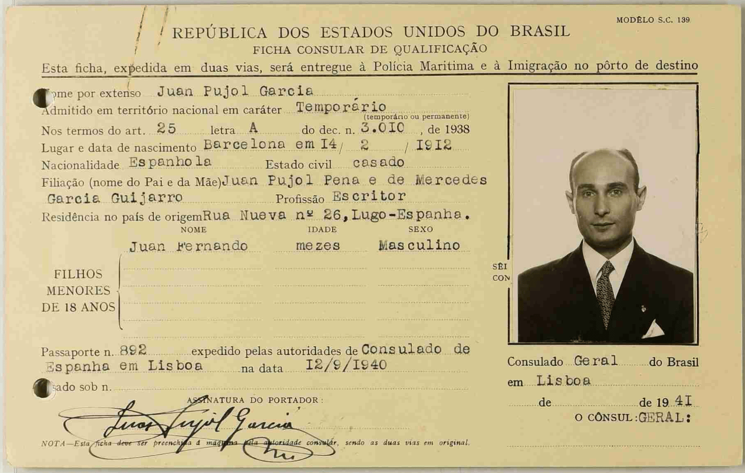 圖為加西亞的個人資料,他作為雙面間諜有多成功呢?從他是少數有辦法同時獲得德國鐵十字勳章與英國大英帝國勳章或許可以略見端倪。