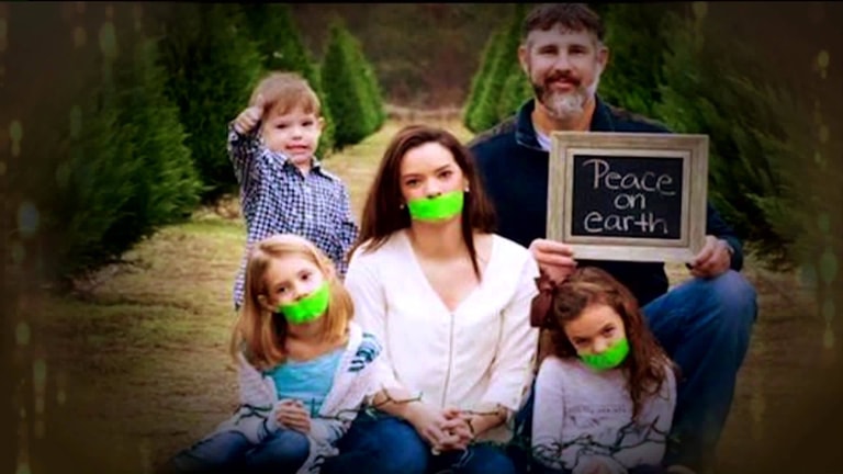 當時,強生(Johnson)一家做了一張專屬聖誕卡寄給親朋好友,這張聖誕卡上媽媽和兩個女兒的嘴巴都被貼上綠色膠帶,爸爸手舉寫著「地球和平了」字樣的小黑板,兒子則對著鏡頭比出大拇指。原本,這張照片只是家裡人間的玩笑,想不到在網上瘋傳,強生一家也遭到網友的瘋狂批評,認為這張照片中帶有濃濃的性別歧視。然而,也有其他網友認為,每一家的聖誕卡想怎麼設計,輪不到外人指手畫腳。