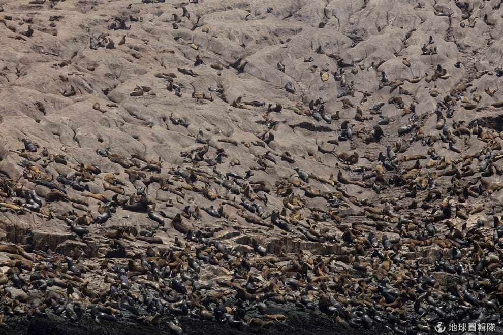 在祕魯的帕洛米洛斯島(Palomino island)上,一群海獅在岩石上曬太陽,場面壯觀。