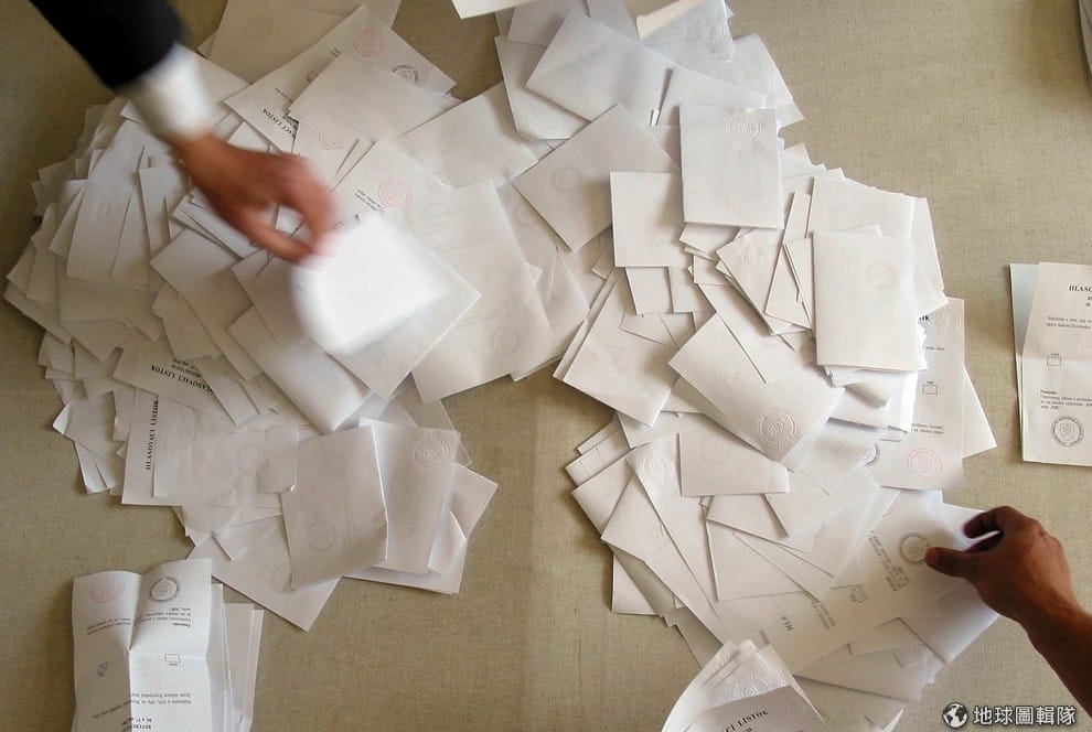 圖為公投結束後,工作人員正忙著清點票數做統計。