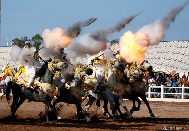在摩洛哥大西洋沿岸的傑迪代城(El Jadida),一場別開生面的國際馬術秀正火熱上演,民眾目不轉睛地觀賞。