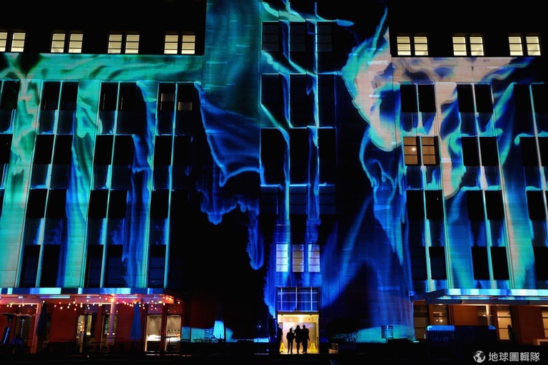 雪梨有名的現代藝術館當然也會加入這場燈光藝術盛宴,藝術館外牆是美麗的藍光。Cameron Spencer/Getty Images