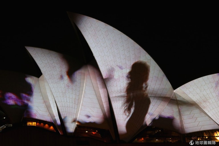 今年雪梨歌劇院依然表現亮眼,不同主題的畫面在劇院外不斷變換。Cameron Spencer/Getty Images