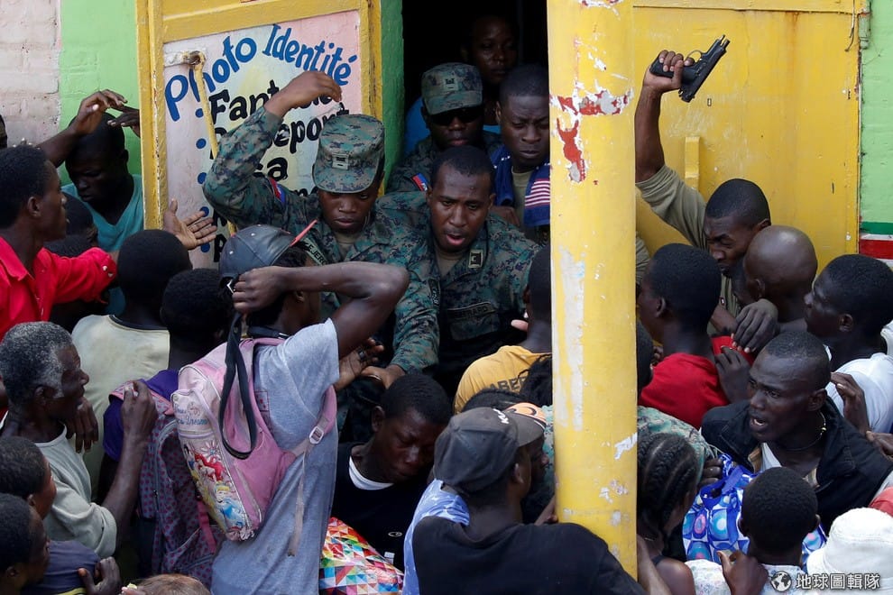 在遭到馬修(Matthew)颶風重創的海地,人們紛紛擠到當局發放食物的地點,混亂場面讓軍人們不得不對空鳴槍,企圖控制排隊的人潮。
