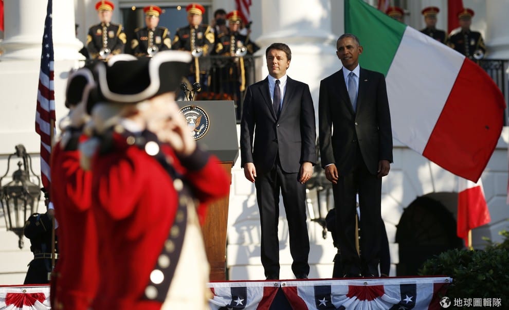 18號這天,義大利總理倫齊(Matteo Renzi,左)出訪美國,受到美國總統歐巴馬(Barack Obama)的熱烈歡迎,當局也為他舉辦了盛大的歡迎典禮。