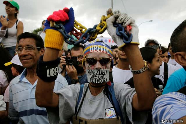 周三(26),數萬名民眾受到反對黨以「奪回委內瑞拉」為號召,身穿白衣走上街頭,抗議者佔滿了通往委內瑞拉首都卡拉卡斯(Caracas)的高速公路,大喊著:「退回獨裁,捍衛民主。」