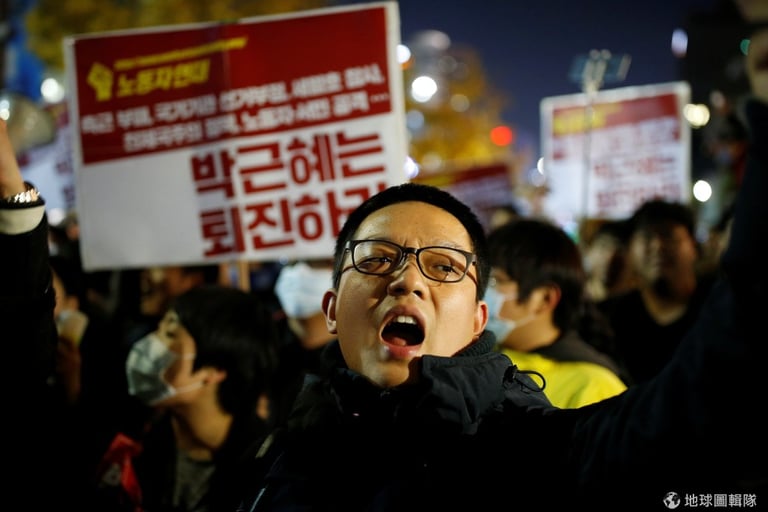 近日來南韓總統朴槿惠被爆出「閨密」崔順實幕後干政的醜聞,大量不滿的示威者聚集,舉著「朴槿惠下台」的牌子要她下台負責。